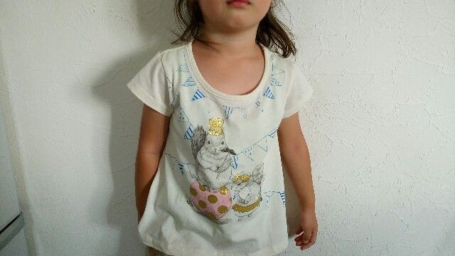 3年経って、しゃかちゃんも110のTシャツを着れるようになりました。